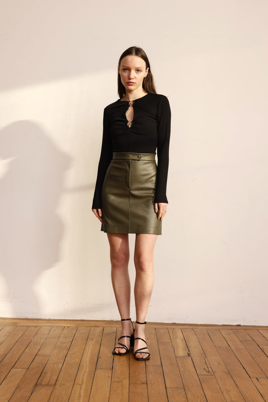 BRADERIE-70% BRADERIE-70%Jupe ELVIS simili kakiPrix habituel €23,69 EUR 23,69 € (€23,69 EUR€ HT)Prix habituelPrix unitaire / par€79,00 EURPrix promotionnel €23,69 EURBRADERIE