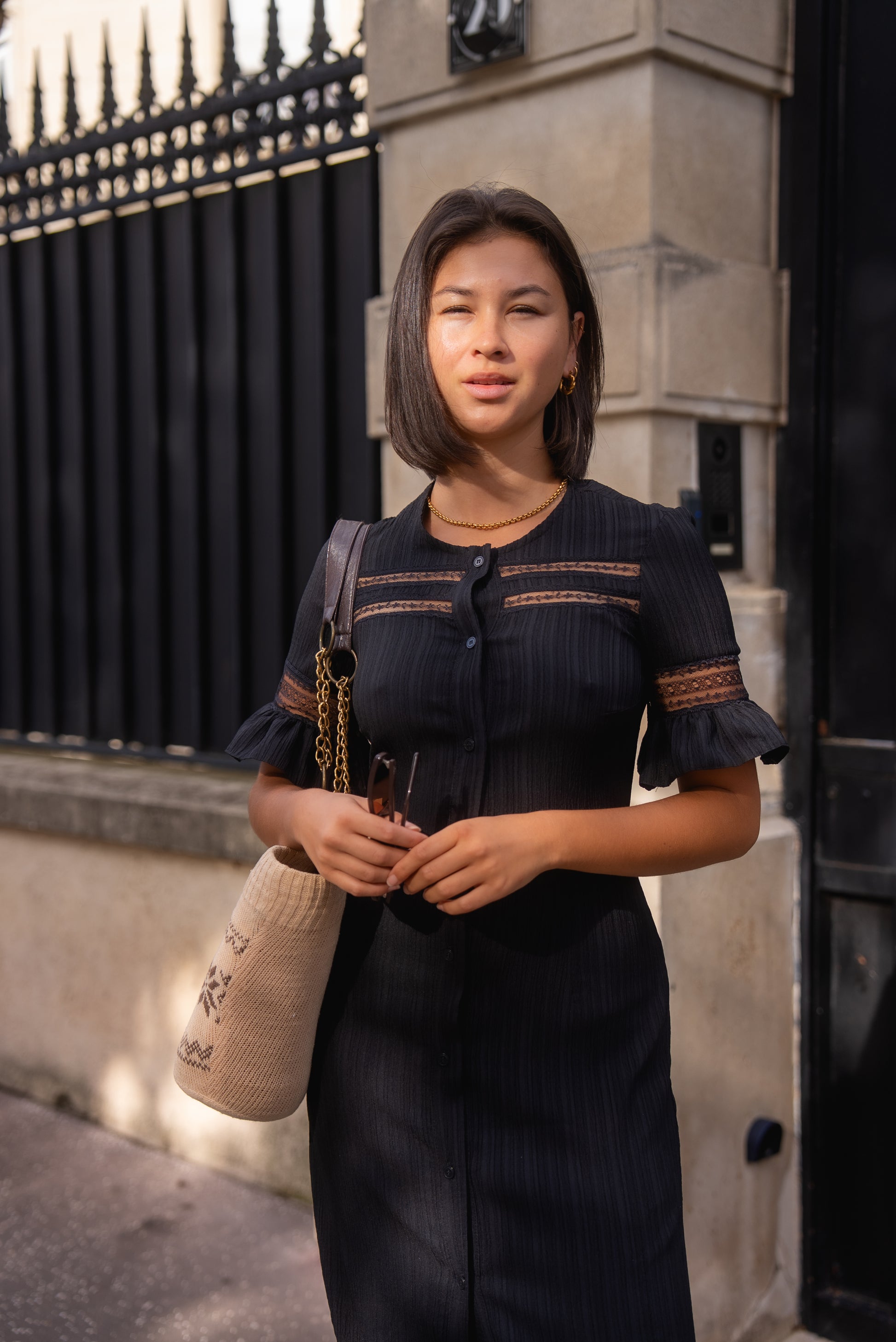 ✨ Robe longue noire boutonnée – détails en dentelle et manches volantées. Élégante et féminine, cette robe noire est parfaite pour vos journées comme pour vos soirées.