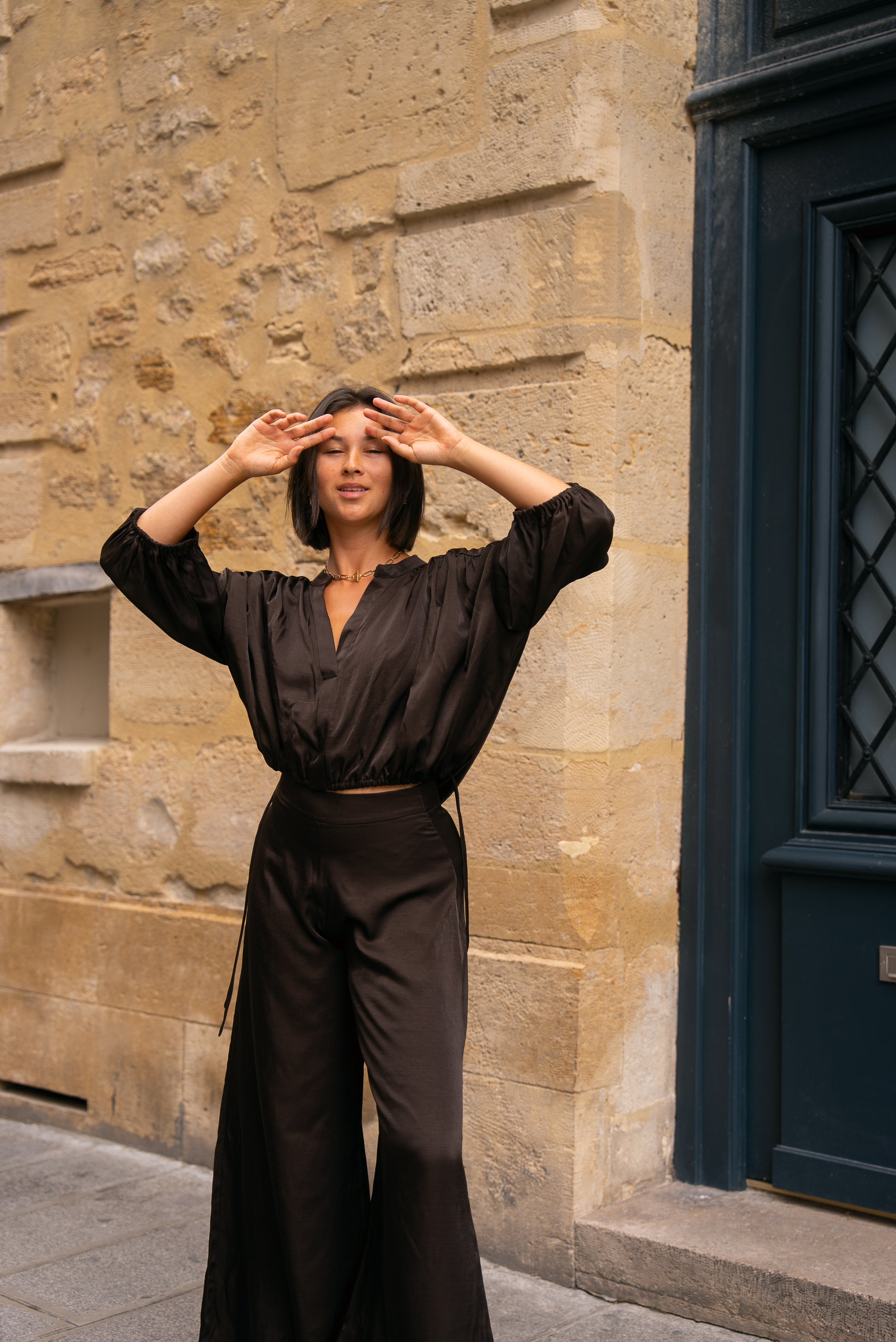Son drapé naturel met en valeur la silhouette tout en apportant une liberté de mouvement idéale pour vos journées ensoleillées comme vos soirées estivales. Le tissu satiné capte délicatement la lumière, créant un effet raffiné sans effort.
