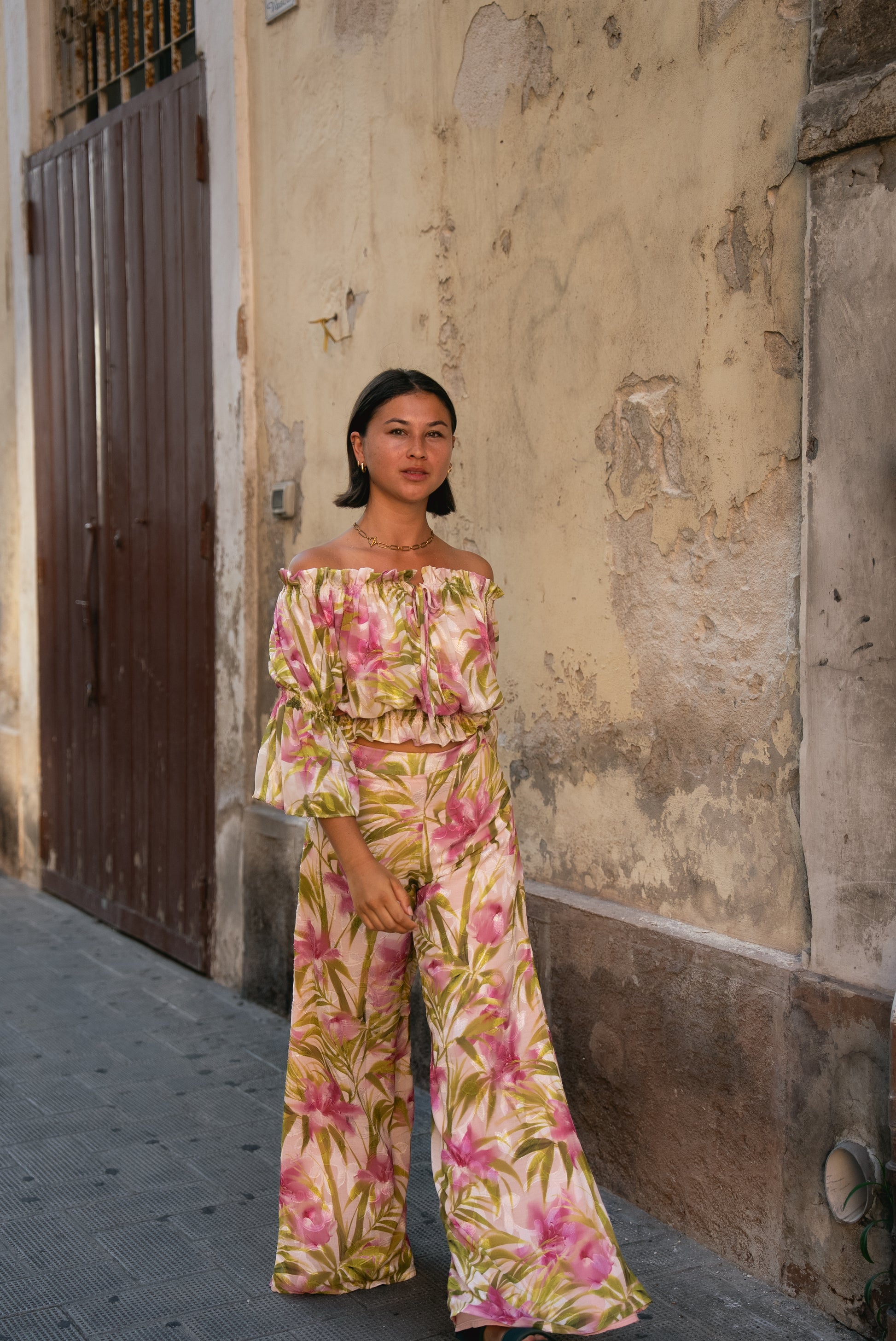 Ce top Jasmine est smocké aux épaules et à la taille. Se pose parfaitement sur un pantalon taille haute.